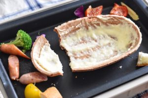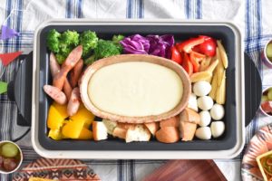 ホットプレートの上に耐熱のお皿を置いてやることが多いチーズフォンデュですが、