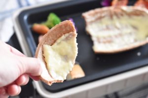 上にチーズフォンデュソースをかけるのも密かに合うのですが、