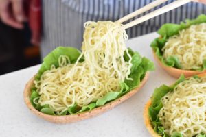 e-trayに野菜を敷いて盛り付けた冷やし中華。