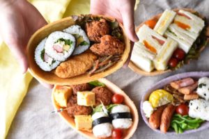 おいなりさんや巻きずし、唐揚げやきんぴらごぼうを盛り付けても。